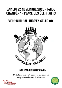 Le samedi 22 Novembre, à l’occasion du festival Migrant’scène 2025, la Cimade et Roue Libre font le choix d’une vélorution en hommage aux femmes exilées et/ou migrantes, en lien avec la date du 25 Novembre: journée internationale de lutte contre les violences faites aux femmes. Il s’agit de la 8ième Vélorution Migr’en selle !