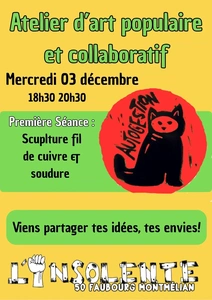 Mercredi soir à partir de 18h30, viens participer à l'Atelier d'Art Populaire de l'Insolente