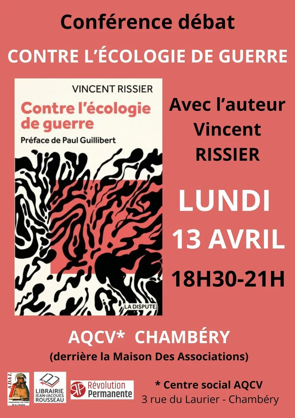 Invité par la librairie Jean Jacques Rousseau, l'Association des Amis de la Librairie et Révolution Permanente, Vincent Rissier sera à Chambéry pour échanger à ce sujet, lundi 13 avril, à l'AQCV.