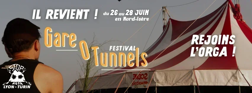 Pour faire face aux avancées du projet, on propose donc de se retrouver pour la deuxième édition du festival Gare O' Tunnels, en Nord-Isère, un territoire dont les terres agricoles sont particulièrement menacées. Nous espérons que ce moment soit informatif et festif : qu'il premette aux personnes de repartir avec suffisemment de compréhension du projet et de déter pour se mobiliser à leur échelle. La prog sera donc un mélange de tables rondes et ateliers pratiques, mais aussi de concerts et spectacles.