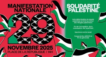 C’est pour cela que plus de 70 organisations nationales appellent à une mobilisation nationale massive en soutien au droit du peuple palestinien à disposer de lui-même et à faire respecter sa souveraineté et son existence.