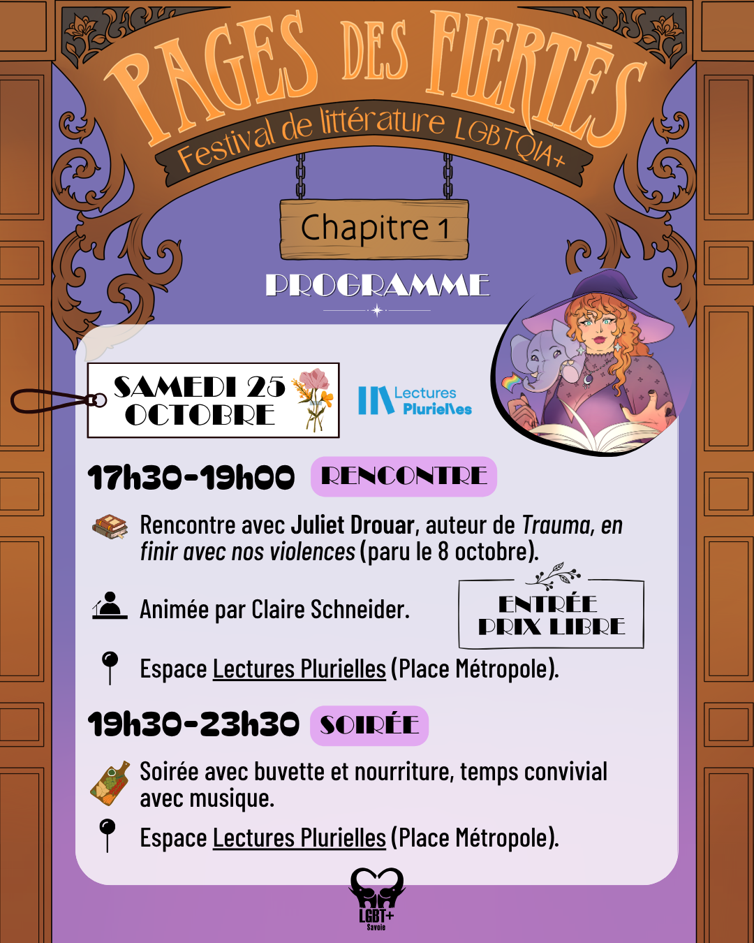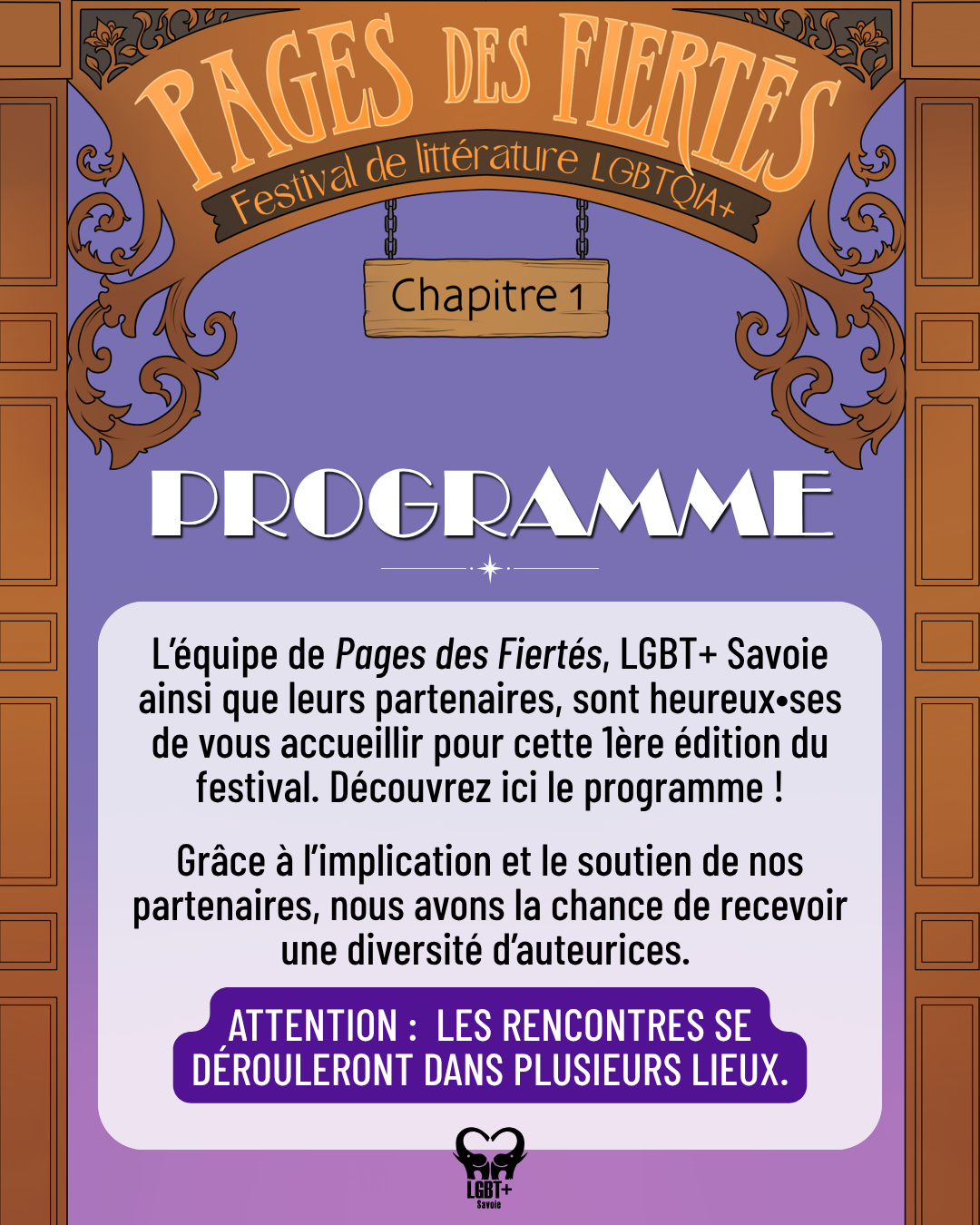 Pour poursuivre sur le thème de cette année art et culture LGBTQIA+ , nous avons l’honneur de vous présenter la première édition du festival de littérature LGBTQIA+ Pages des Fiertés, le premier chapitre que nous espérons voir se poursuivre dans les années à venir.