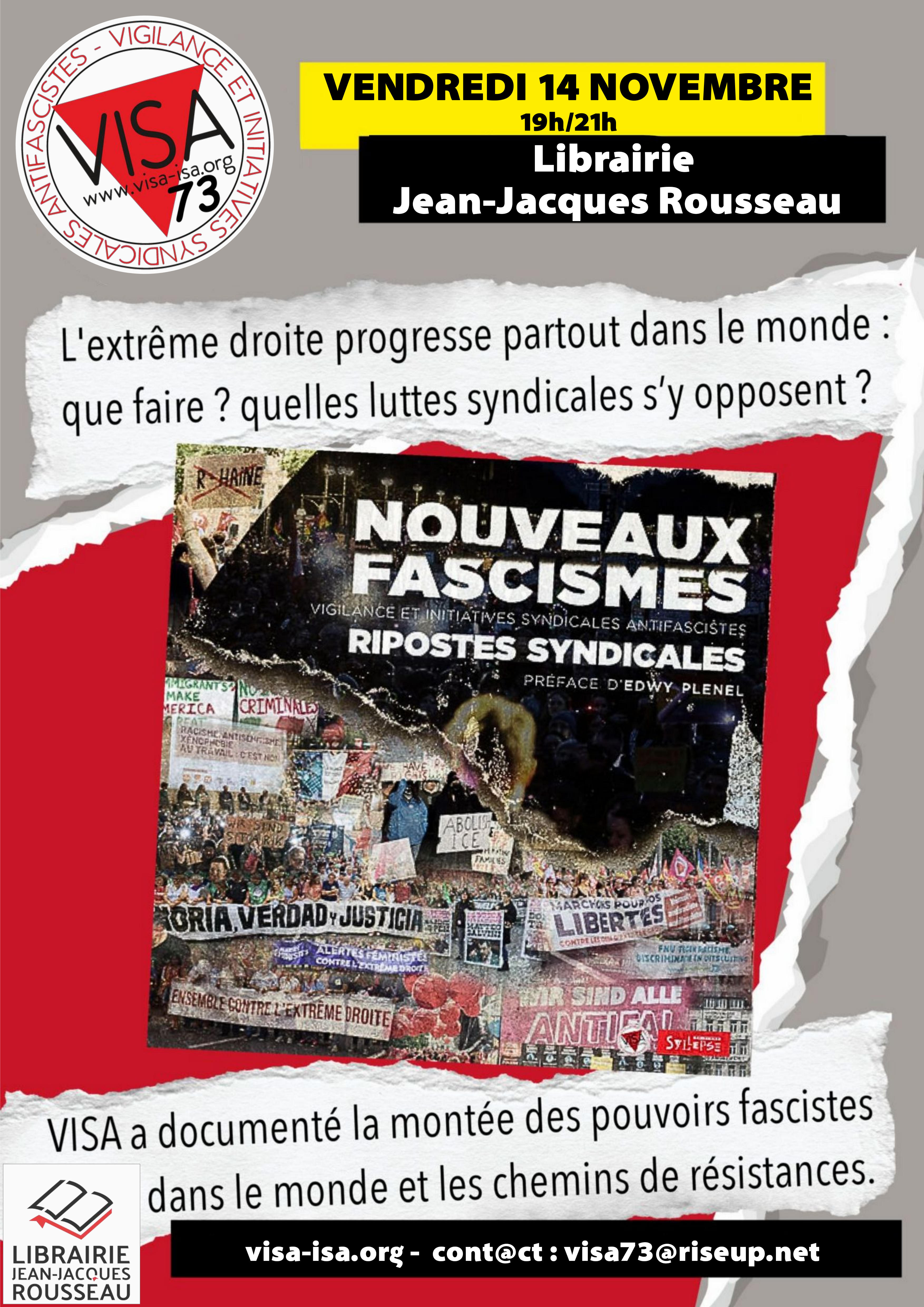 Le collectif intersyndical VISA 73 (Vigilances et Initiatives Syndicales Antifascistes) présente le nouvel ouvrage de VISA, "Nouveaux fascismes / Ripostes syndicales"