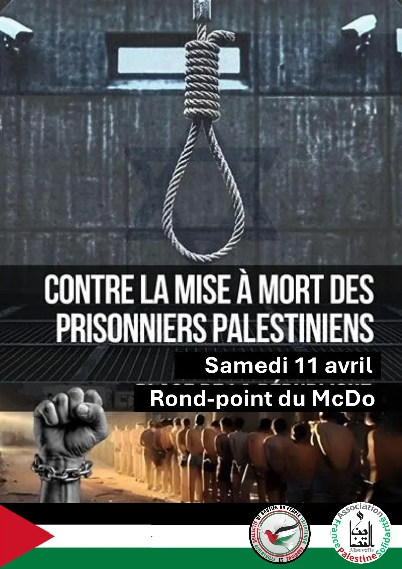 Nous dénoncerons la loi infâme prévoyant la mise à mort des prisonniers palestiniens.