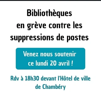 La Mediatheque de Chambery est en grève depuis déjà plusieurs mois pour demander entre autres le remplacement des postes vacants et protester contre la degradation de leur condition de travail !!