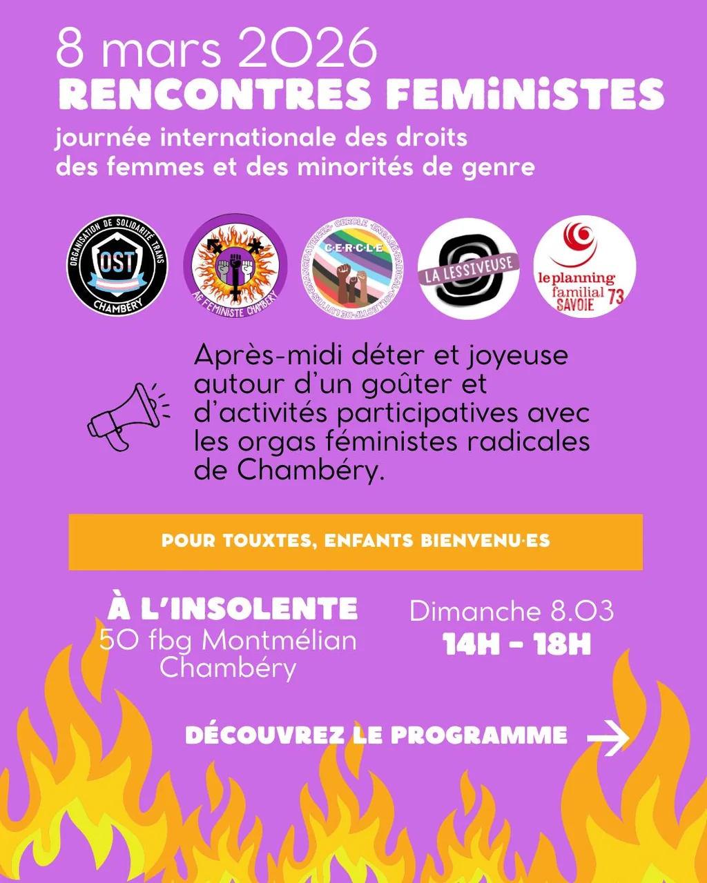 Après-midi déter et joyeuse autour d’un goûter et d’activités participatives avec les orgas féministes radicales de Chambéry.