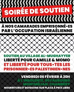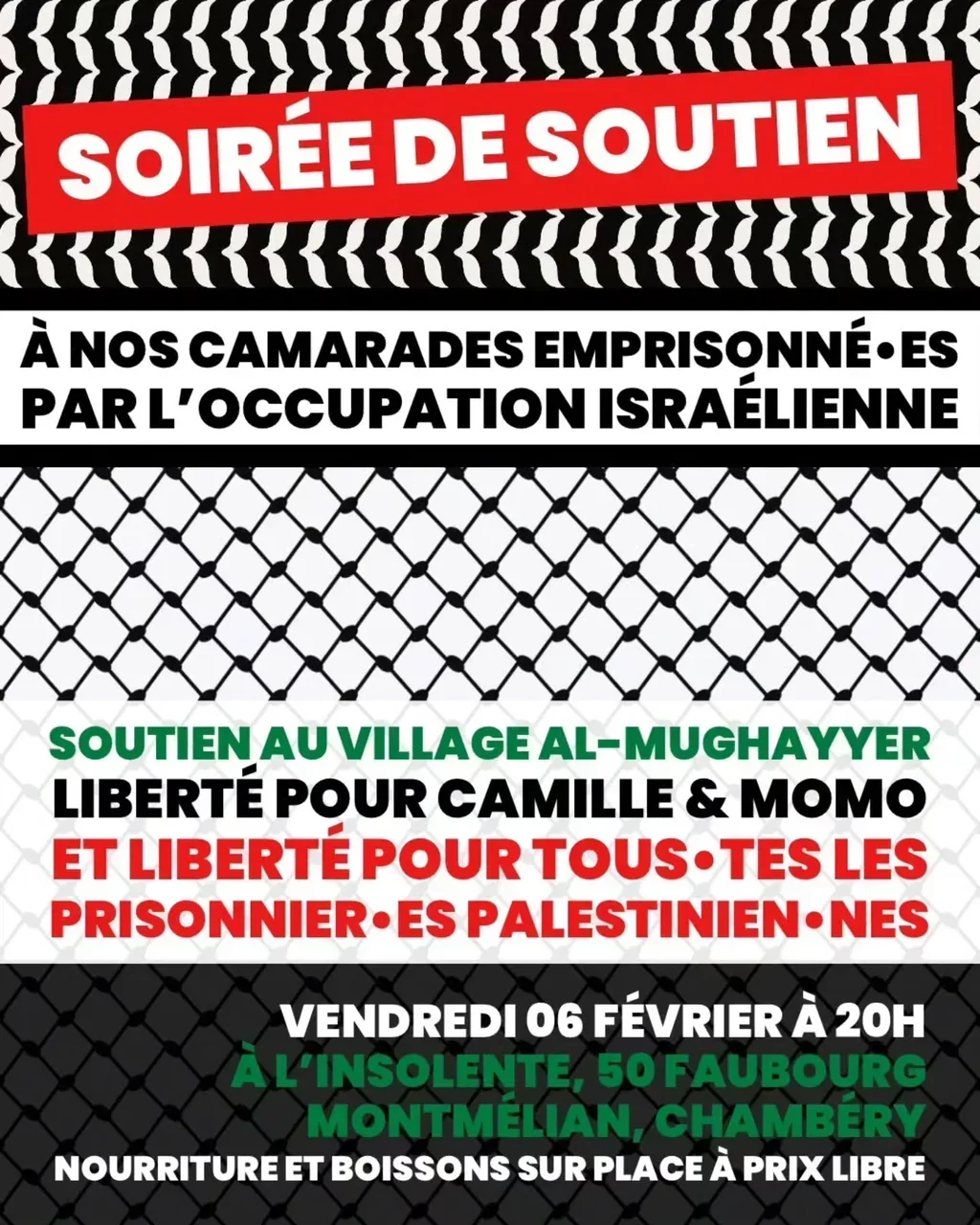 Soirée de soutien pour notre camarade chambérien.ne et les détenus de Palestine