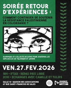 Soirée Retour d'expériences : Comment continuer de soutenir la résistance palestinienne en Cisjordanie?