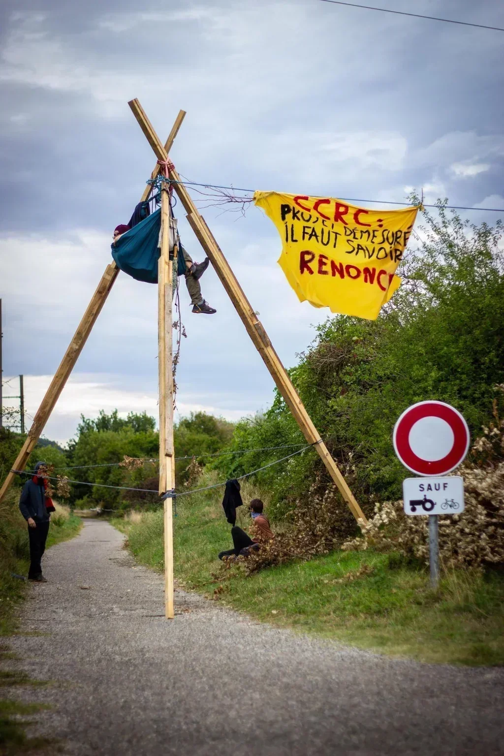 ❓Début octobre a eu lieu une répression disproportionnée de millitant•es opposé•es au projet illégal de déviation de Saint Peray en Ardèche. Une centaine de CRS, la cellule nationale d'appui à la mobilité opérationnel (CNAMO), pour déloger 16 camarades qui occupaient les lieux.