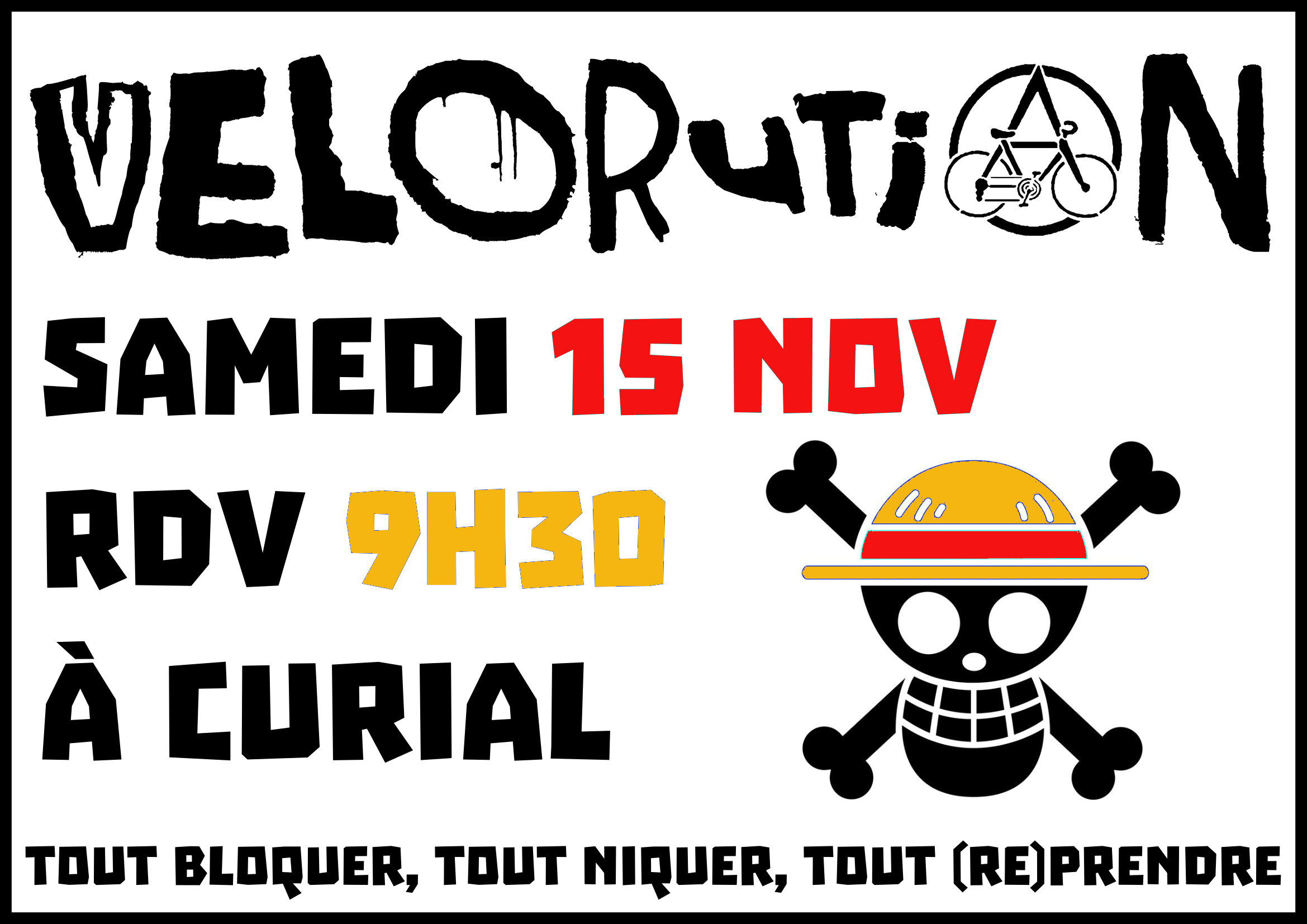 Nouveau cortège vélorutionnaire, on va essayer de changer la façon de faire et de tenter de nouvelles choses mais tout se décidera sur place. L'air est frais et pollué ces jours pensez à prendre cache cou et/ou masques chirurgicaux 😉