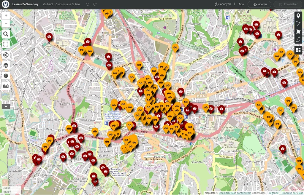 Carte participative des caméras de videosurveillance de Chambéry et environs