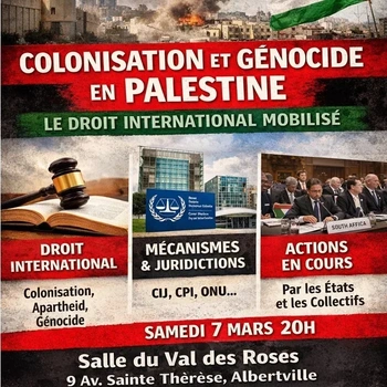 Réunion Publique - Colonialisme et Génocide en Palestine - le droit internationale mobilisé