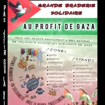 Dimanche 9 novembre, salle festive du scarabée, grande braderie solidaire au profit de Gaza
