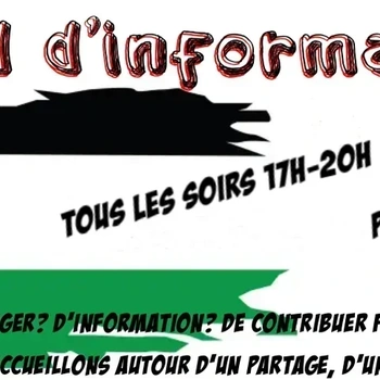 Stand d’information en solidarité avec la Palestine, avec divers partages visuels, tous les soirs, de 17h à 2Oh, place de Genève