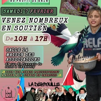 Stand d’information en solidarité avec la Palestine, avec divers partages visuels, de 17h à 20h, place de Genève