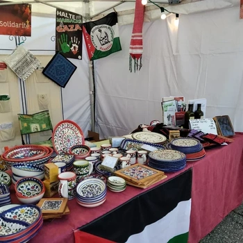 Un chalet du marché de Noel consacré à la vente d'artisanat palestinien